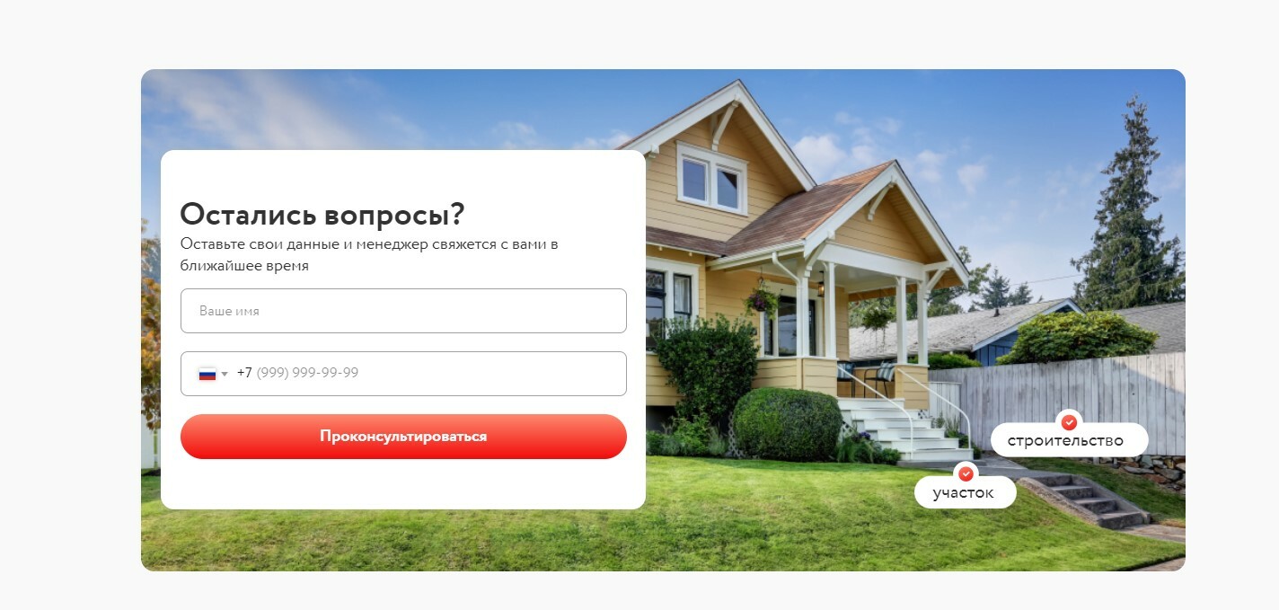 Вы платите комиссию только за покупку участка. Подбор подрядчика, оформление ипотеки — бесплатно.